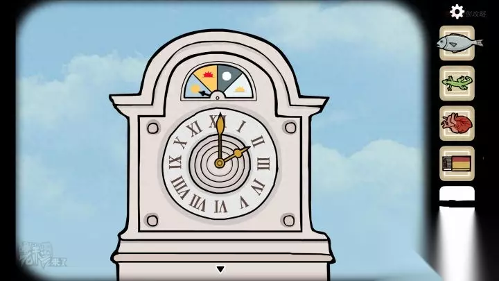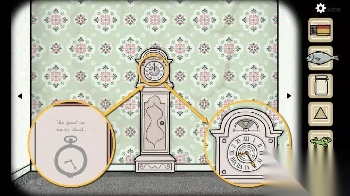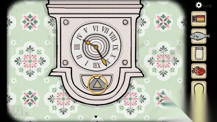 鱼形-落地钟视角:按照封面的时间【02:15】调整【落地钟】的时间,拾取最后一个【三角形钥匙】