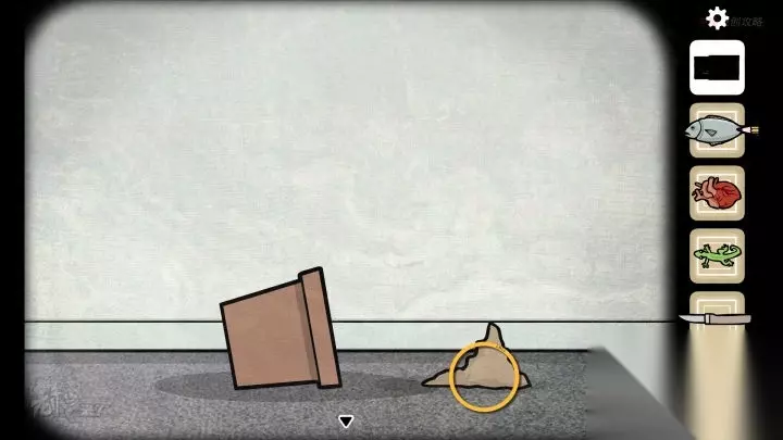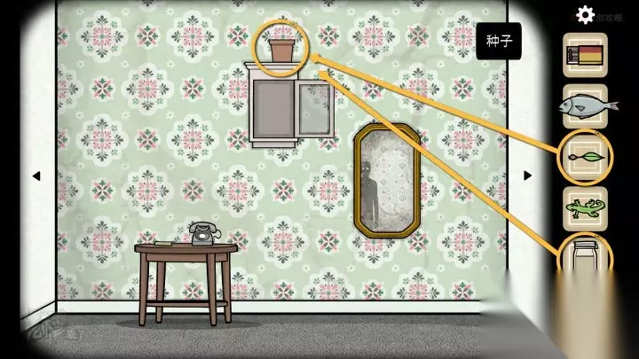 壁虎-镜子视角:从壁虎的视角看房间,都是倒置的。观察【花盆】拾取【弹珠】,观察【镜子】