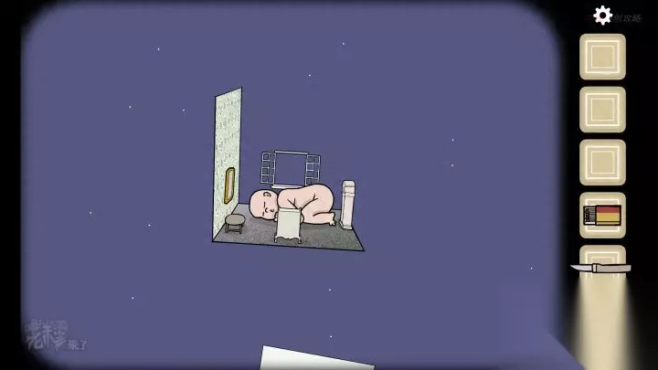 人形-虫洞视角:用【刀】划开壁纸(壁纸展示的是其他锈湖游戏会出现的场景),并卷起壁纸,露出【虫洞】