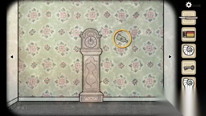 鱼形-落地钟视角:根据裂痕依次点击【玻璃瓶】表面,直至破碎,获得【贝壳】