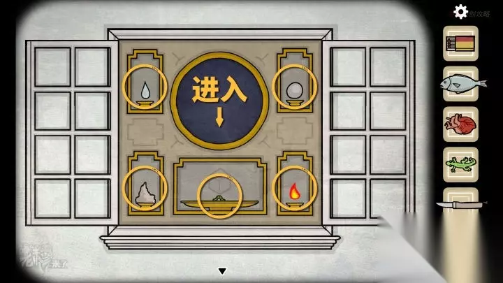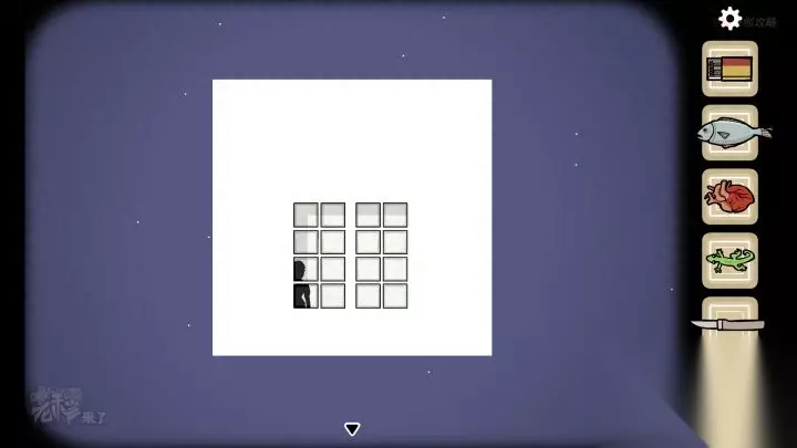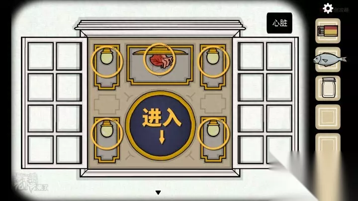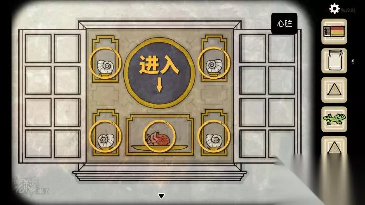 壁虎-虫洞视角:将四颗【弹珠】放置在【虫洞】四角,再将【心脏】放置在中间的盘子中,切换至【人形视角】