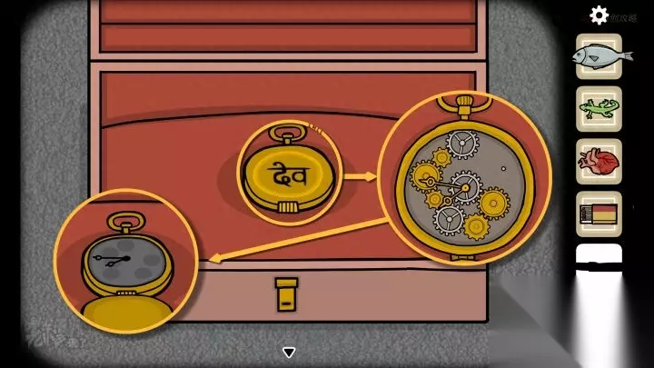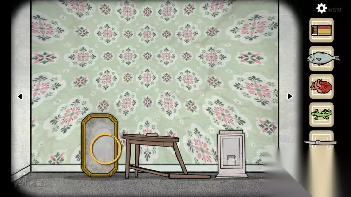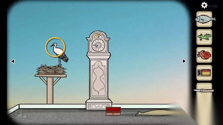 鱼形-落地钟视角:依次拔掉【落地钟】的【钉子】和【木楔】,直到露出【手】,将【刀】递给【手】,点击【手】后,可以得到【心脏】