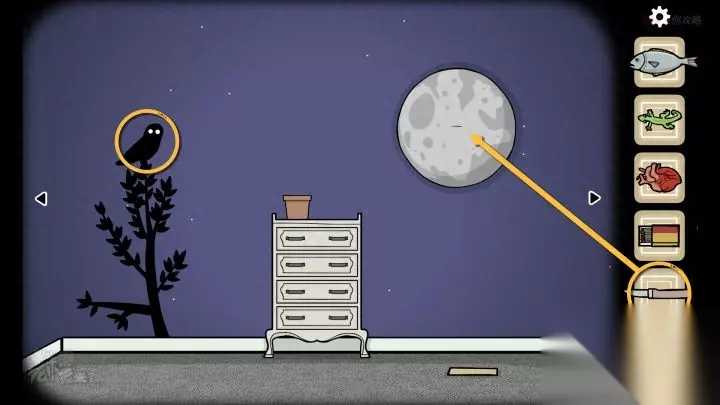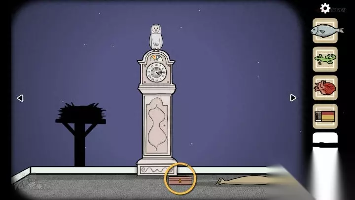 鸟形-落地钟视角-深夜:拾取左侧的【向日葵】,并观察【猫头鹰】