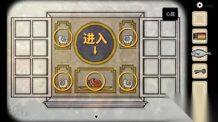 鱼形-落地钟视角:将四个【贝壳】放置在【虫洞】四角,将【心脏】置于中心盘中,进入【虫洞】,切到【人形视角】
