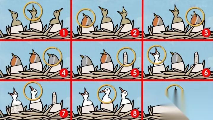 鸟形-落地钟视角-早晨:【白鹳】吐出【婴儿】