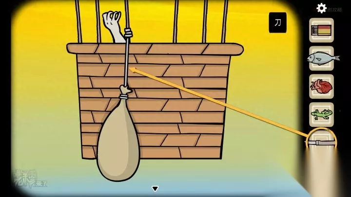 鸟形-落地钟视角-晚上:用【刀】割断【沙袋】上的绳子