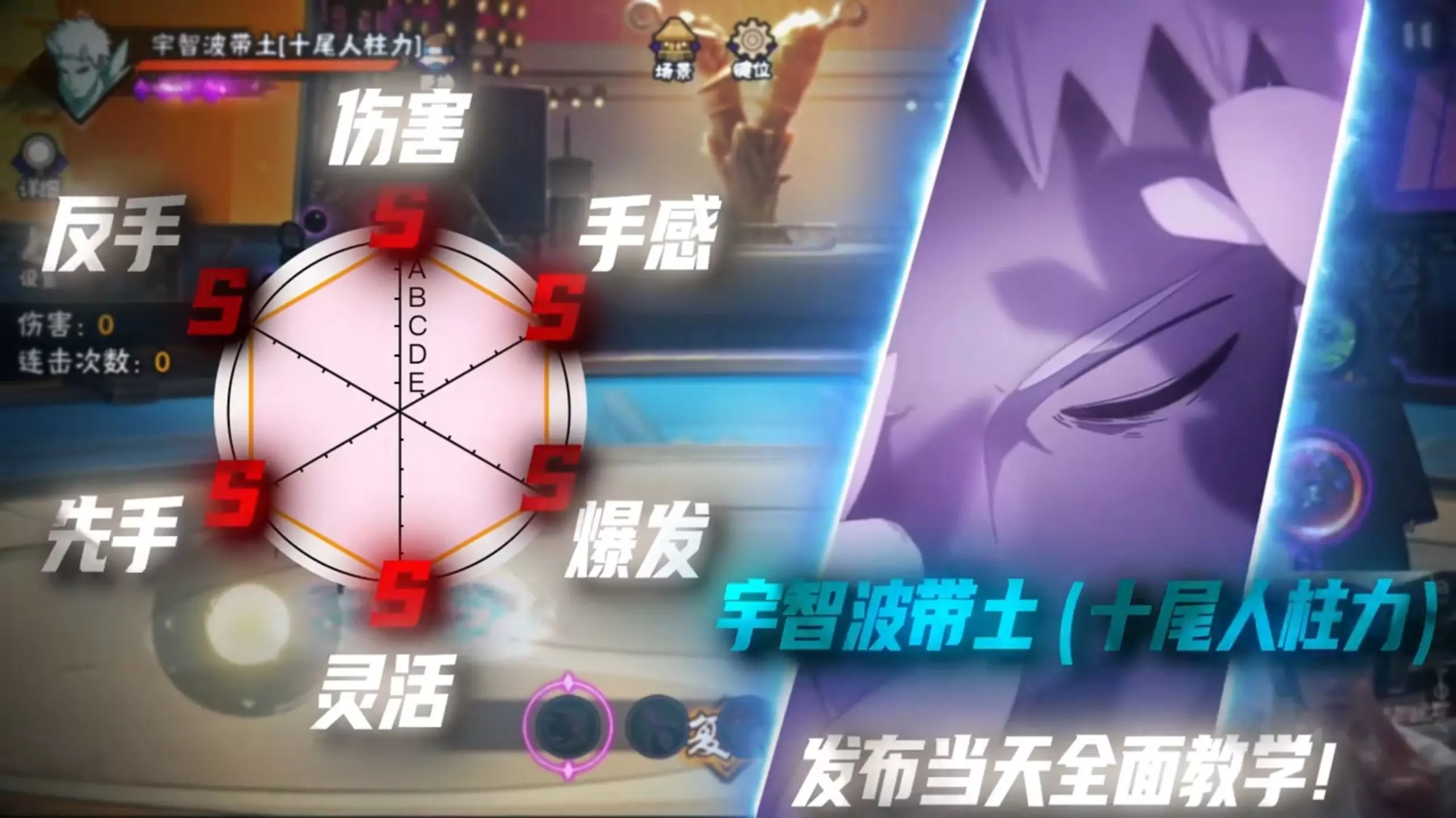 这是火影手游的宇智波带土[十尾人柱力]实战基础玩法教学,展示了该忍者在决斗场和不同忍者对战的实战操作,讲解其技能使用等基础玩法,助力玩家掌握该忍者的对战技巧。