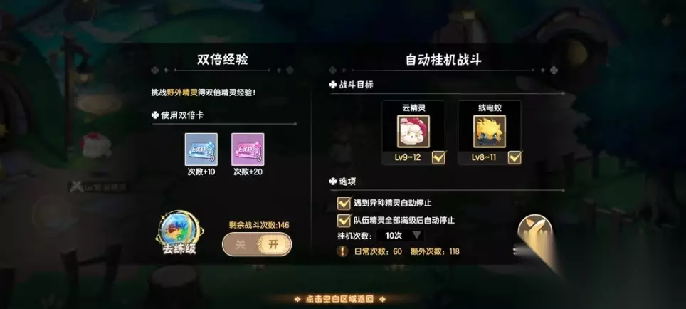 方法三、精灵自我锻炼 1、玩家处于离线状态,可以设置精灵自我锻炼的方法,来提升他们的等级 2、离线前启动精灵锻炼,可以让它在此期间持续提升,等级高的精灵在锻炼过程提升的更快