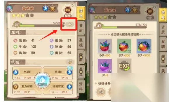 方法二、经验之果 1、经验果也是获取精灵经验的一个途径,轻触经验条旁的加号即可使用经验果 2、获取经验果的途径:永恒梦境、远洋商会、竞技场、商城采购