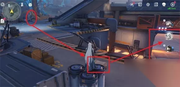 2.然后从信标位置往地图东南方向走,可以看到一个宝箱,站在宝箱位置往左手边下层看可以看到一个门。