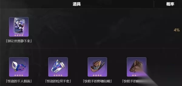 二、物品的强度 还剩下的4星物品如下,下面我将把每个物品对角色提升百分比告诉大家