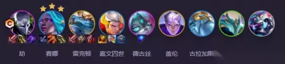 阵容攻略:查看详情 6、圣灵劫 阵容构成:劫、赛娜、雷克顿、嘉文四世、薇古丝、盖伦、古拉加斯、拉亚斯特、蒙多医生