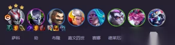 阵容攻略:查看详情 9、辛迪加小丑 阵容构成:萨科、劫、布隆、嘉文四世、赛娜、德莱厄斯、薇恩、蒙多医生