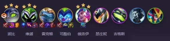 阵容攻略:查看详情 7、猛拍按钮 阵容构成:波比、维迦、雷克顿、可酷伯、俄洛伊、瑟庄妮、吉格斯、加里奥、希瓦娜