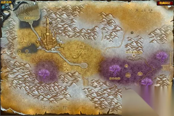 龙骨荒野 有28个采集点,都分布在西北部山脉。