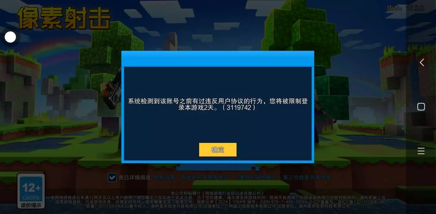 请问一下,这是只有两天不能登录游戏吗?