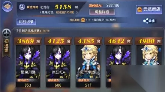 不同组别可参与战斗的魂形态数量不同,为了冲击更高组别排名玩家应该尽早开始培养自己其他的魂形态。初选组和进阶组的玩家只可使用一个魂形态参加战斗,高手组和英雄组的玩家可使用两个魂形态参加战斗,传说组和天神组玩家则可以使用最多三个魂形态一同参加战斗。觉醒者们战斗之前可以查看对手的魂形态和英雄搭配,规划自己的出战阵容来赢得胜利。 玩家每天有10次免费的竞技场挑战次数,当10次挑战次数用尽后,玩家可使用魂晶重置挑战次数来继续自己在竞技场的战斗。 玩家通过在竞技场战斗可以获得竞技币,在竞技商店中可使用竞技币去兑换丰富的奖励。
