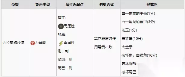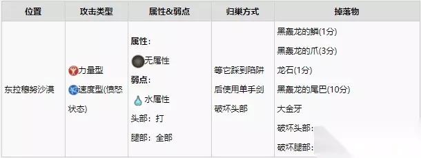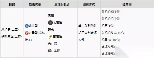 怪物王概述 靠近怪物王时,纳比露会提示我们,如果没有准备好的话最好赶紧溜走。 和普通怪物相比,怪物王更加强大,讨伐难度更高,但是我们也有机会获得属性更好的怪物蛋。 需要注意的是,击败怪物王之后并不代表就可以立刻在附近找到怪物蛋,例如,轰龙怪物王出现在第二区域——艾卡拿地区,但只有到达第四区域——拉穆努地区之后才可以在巢穴中找到它的蛋。 和其他怪物一样,怪物王进入愤怒状态时不会受到陷阱的影响。 轰龙