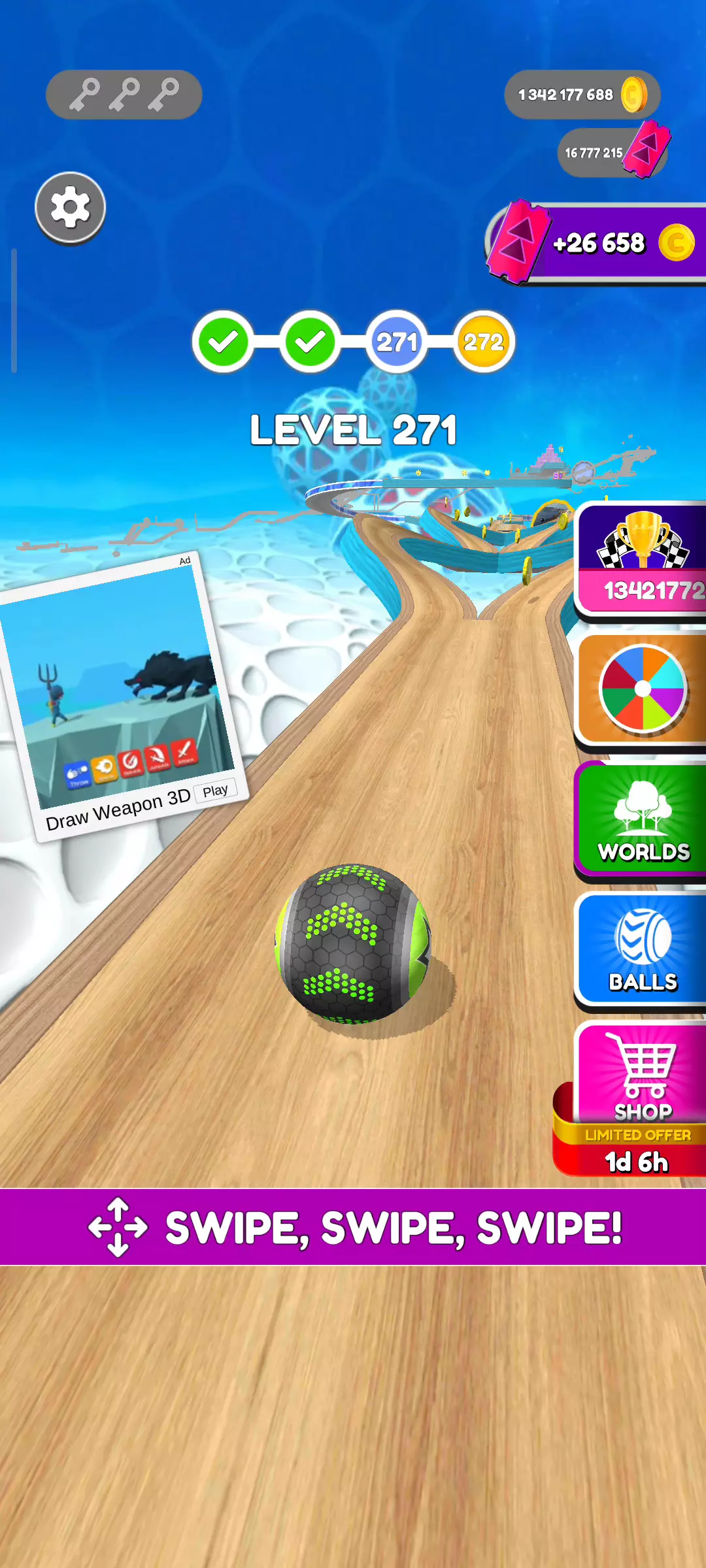欢迎来到体验超真实的球球跑酷!起步容易,但在滚动过程中更具挑战性和乐趣! 你能走多远而不到达底部?这是一款新街机游戏,让您参与一个看似简单其实紧张刺激的挑战:尽可能长时间地滚下斜坡,而不会掉下边缘或沿途撞到任何障碍物。要准备好在永无止境的路面下坡时大幅提速! 2024/3/14更新内容: -观看满10次广告后,广告不再中途弹出 -大会员新手礼包、限时礼包兑换(需更新至233乐园最新版本) 游戏具有以下游戏特色: • 下坡时超乎想象的有趣体验 • 当您冲下斜坡时,充满肾上腺素的挑战 • 随机斜坡,让每个斜坡游戏都成为独特而新鲜的游戏体验 • 在游戏中进入彩蛋地图,感受不同主题的联动乐趣! • 越走越难 • 无尽的奔跑体验,任何错误都可能意味着游戏结束