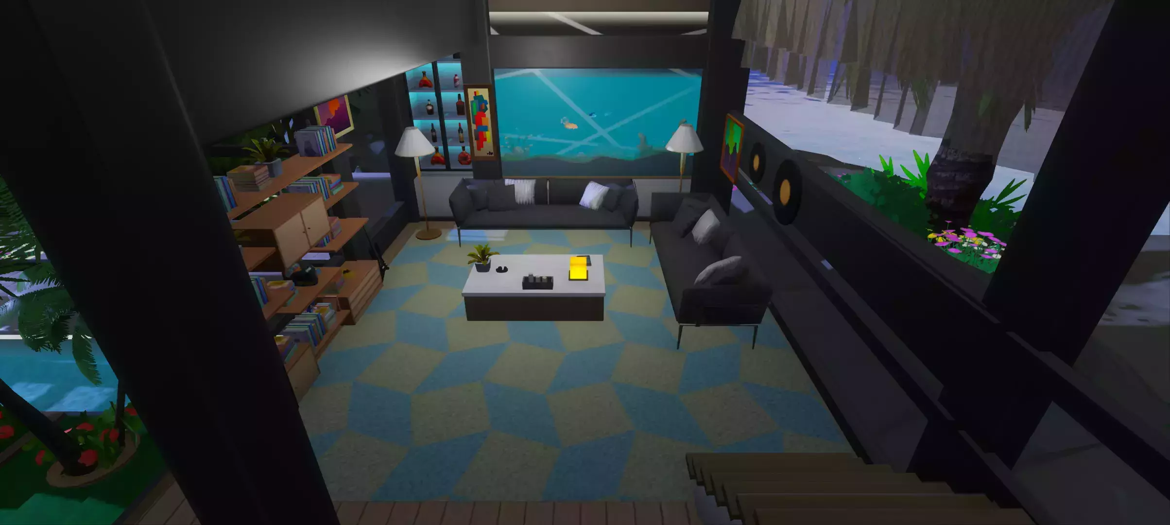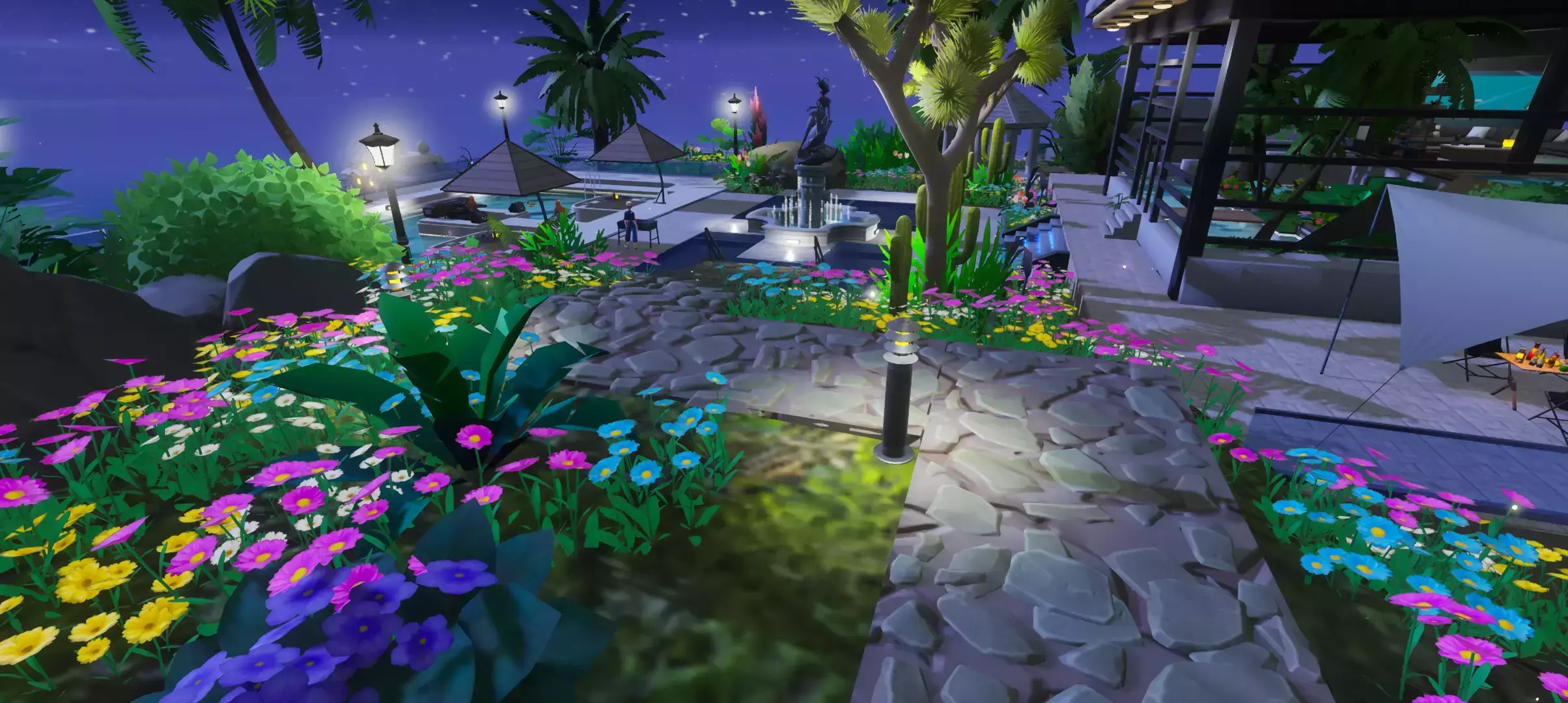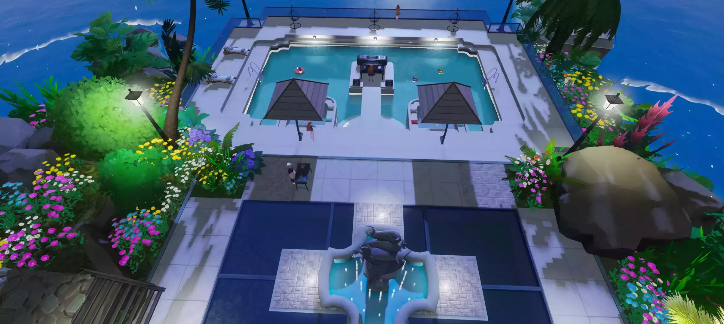 正中央有个巨大的泳池