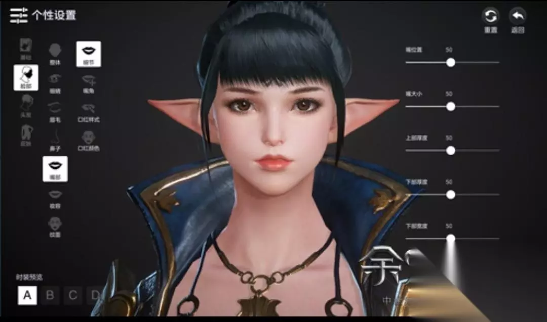 个性化定制虽然没有限制,但按照一定的顺序来也可以捏出自己心中的样子。脸型、鼻子、下巴、颧骨决定的是整个脸的框架,首先对它们进行调整,嘴巴、眼睛、眉毛起到点缀作用,可以等大型出来后再进行细节调整,耳朵、妆容、服装和肤色对整体形象影响不是很大,最好等基础调节完后再进行选择。想要超幼齿的萝莉感觉,就可以选择大眼睛、坚挺的鼻梁、小巧的鼻头和饱满的小嘴巴;想要成熟风御姐,就可以加大眼距、选择凌厉的眉型和成熟的口红色号。