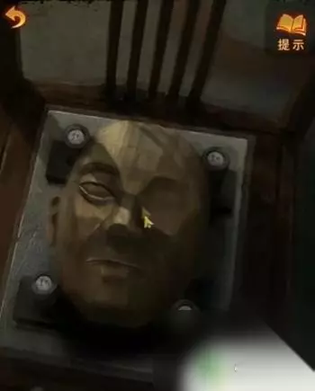 3、假眼睛放在面具上,用书签打开面具下面的护栏罩,把小陶人放进通风口里拿到玻璃球。