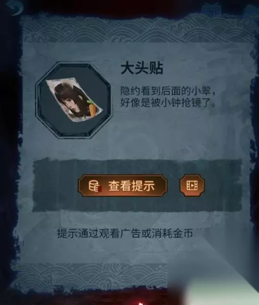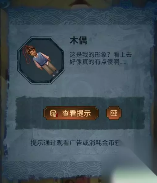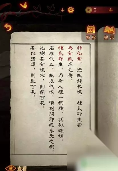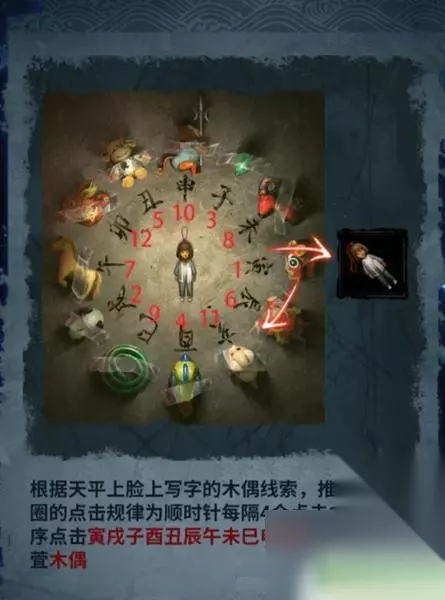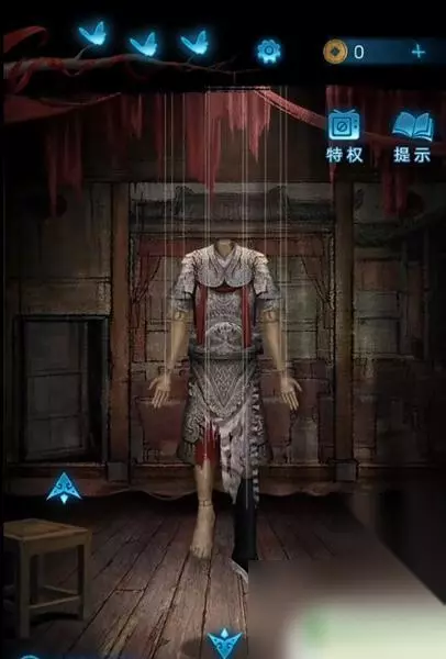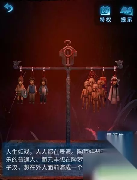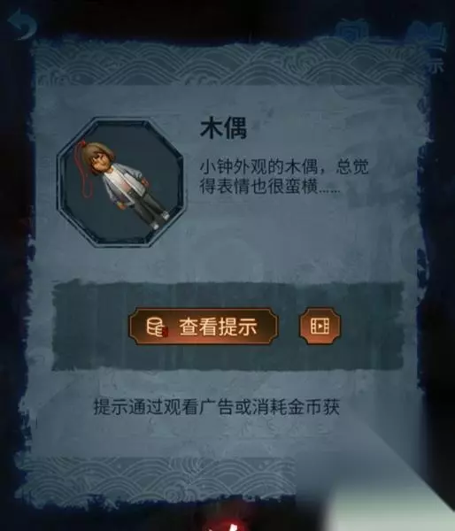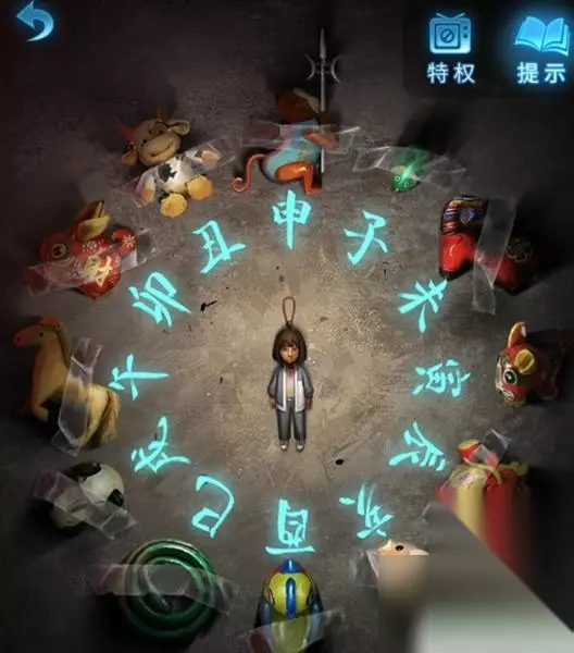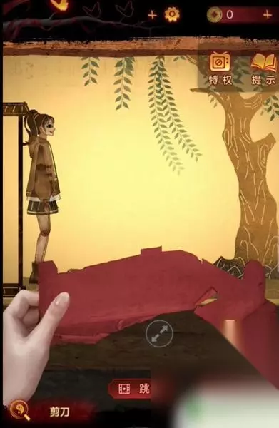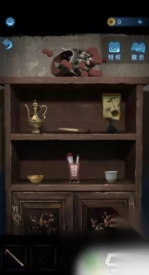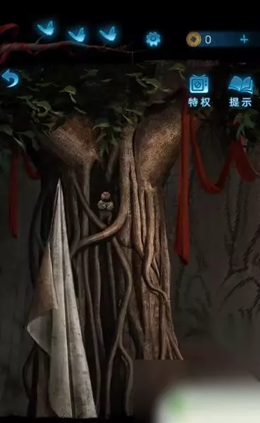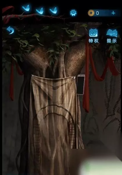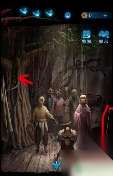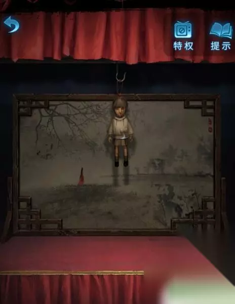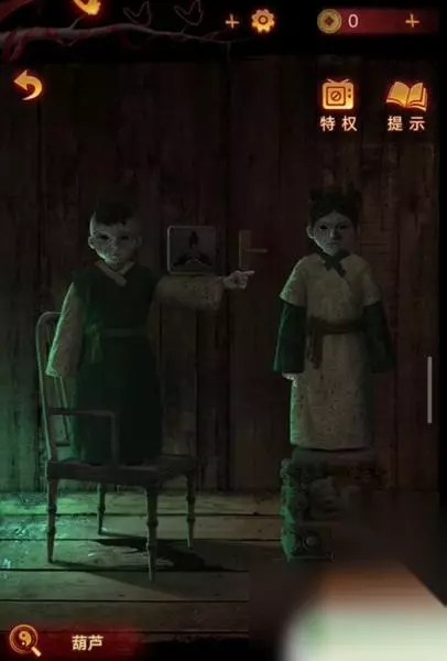4、这时使用画笔点击木偶头的眼睛(此处有高能),完成步骤得得到房顶饰品,回到算盘处一键使用房顶饰品,获得刀币。 5、使用刀币打开房间的抽屉,将会获得种子,然后把种子和纸灰放到碎石堆,接下来会直接长成大树,获得葫芦道具。 6、随后点击童子雕像,可以看见大树上有提示内容,玩家更具提示内容,来到女童雕像下面上下左右几次,将会获得纸钱,此时风车放到女童手上直接变成红纸。