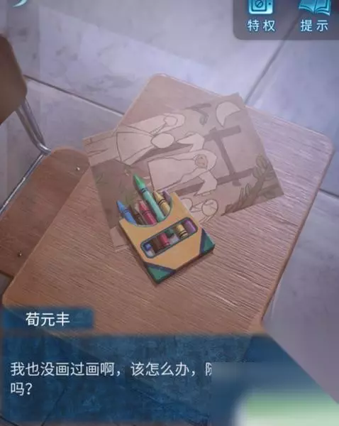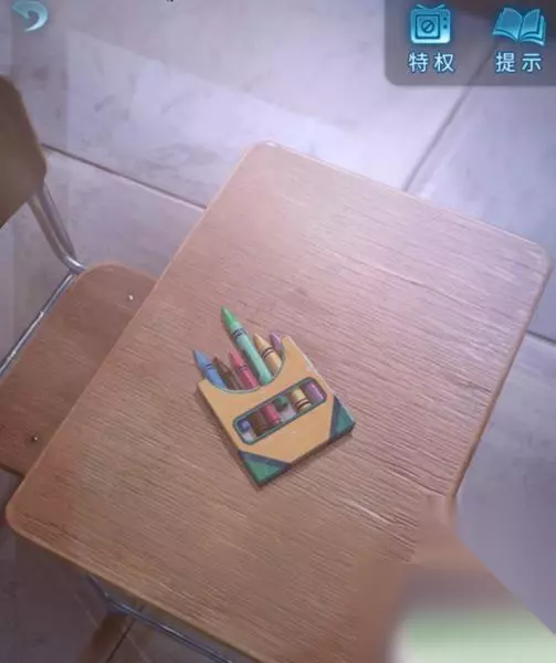 23、在回到教室,选择教室的课桌将“红色蜡笔”放进去点击画纸,开始小游戏,完成后获得“书”。