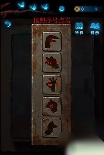 13、这时是第三个解密场景,玩家根据图片序号点击拉绳子方向。