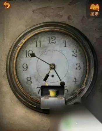 8、然后打开房间大门,使用磨刀石砸开关,再按照监控中的图片将钟表调成图示位置即可拿到线轴。