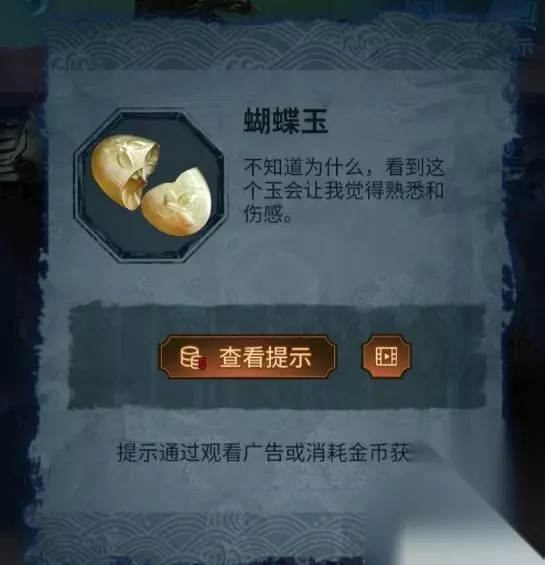 2、在草丛中搜寻找到纸伞,再点击花丛处的蝴蝶获得玉蝴蝶,将玉蝴蝶放在碑上。