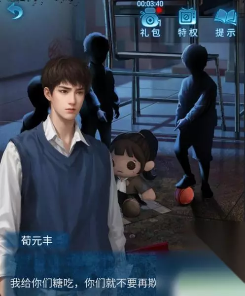 4、接下来离开房间后,点击下方的箭头,进入到教室场景,将糖果人偶附近的孩子们,即可获得“皮球”和“大纽扣”。