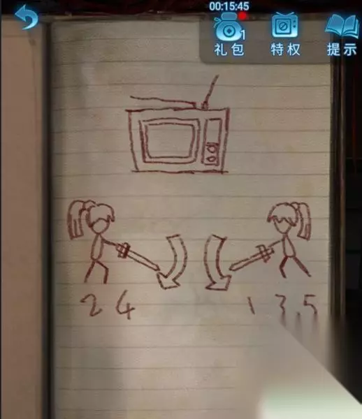 2、然后点击花轿,获得“蜡笔”,观看所获得的日记内容,将电视机顺序放置:左24 右135。电视天线,左长,右短,左边的天线向左,右边的天线右斜方;蜻蜓白色,瓢虫黑色,蝴蝶没有颜色。
