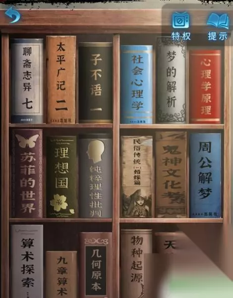 24、返回现代小屋,将书籍放入到房间内的书架上,而里面书籍的摆放摆件根据幻境中来调整,获得“小木块”。