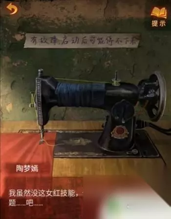 13、将线轴、红盖头和针放到缝纫机上缝制可以拿到红布,最后把红布放在这里就能通关了。