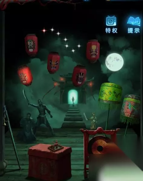 三、第三章攻略 1、点击面前桌上摇晃的盒子,再拖动脸谱成这个样式即可开箱子获得小陶人。