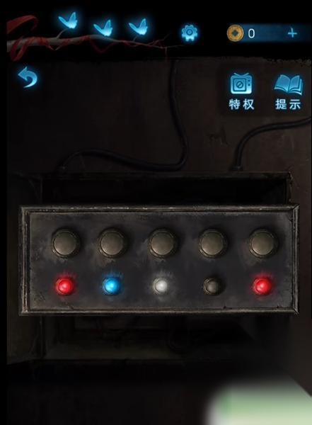 9、根据监控上的灯光,依次按下“红1下、蓝2下、白3下、红5下”。