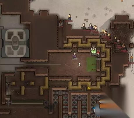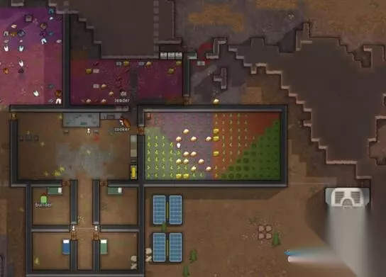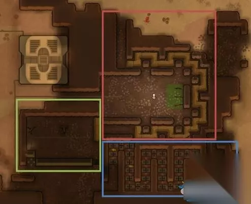 本次开局没有艺术专长的小人,中后期创收将变得困难。 之后小人开始建设,期间先做3张床,睡地下坏处太多不多说可以自己体会。 有睡觉的地方后开始解决温饱问题,在种植区附近规划食品仓库 (建议靠近室外,因为冷藏用空调热端要朝向室外,当然你在家里面开个洞当我没说) 太阳能,电池,炉灶,屠宰桌,并且贴近种植区和食品仓库,最大程度减少厨师在移动中消耗时间。 本人是做一个长廊,长廊内是工作区,长廊一侧是物质区,一侧是生活区: