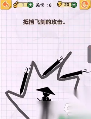 1.在角色的周围将会有大量的飞剑出现,需要你绘画出安全的保护罩来收获胜利。