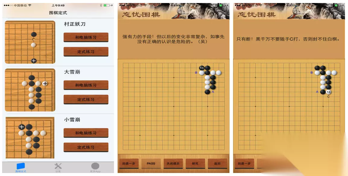在不少棋类运动中,小伙伴们除了对于对局本身感兴趣之外,对于解残局也有着浓厚的兴趣,那么在这款国际象棋中,你的梦想就可以得到实现。在游戏内,玩家们设置了多种餐具,并且按照难度进行了划分,小伙伴们可以从最低等级的残局开始挑战。当你的技术磨练到一定程度之后,就可以开始挑战高难度了。解开残局,可是一件让人非常有成就感的事情。 高速下载 普通下载 优先233乐园APP下载 5、《围棋定式练习》