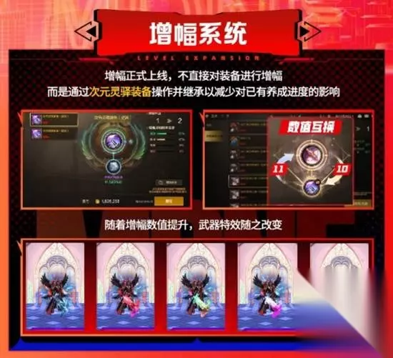 端游在推出cp武器时,就曾掀起过一阵研究build的狂潮。那个版本也是很多玩家认为装备多样性能和异界掰手腕的版本。除了特性武器外,新版本还推出了强化特定技能的属性词条。当它们搭配上特性武器和全新的装备积分系统后,手游的装备和技能搭配空间会丰富许多。 虽然前面的改动已经足够丰富,但和下面这位重量级选手比起来,还是差了不少分量。 由于手游强化等级上限20且不会掉级。很多玩家在这方面已经无法提升。因此手游必须尽快引入全新的装备成长体系。 但国服却没有沿用在韩服的研磨系统,而是在70级版本请回了一位老朋友。没错,增幅系统终于回来了。
