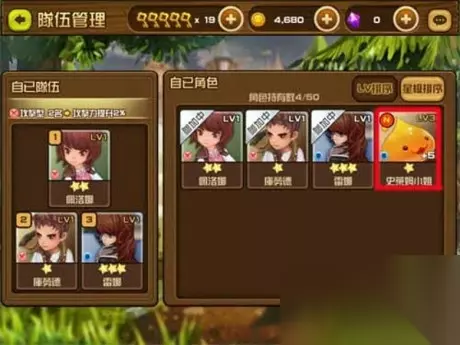 2. 在队伍管理界面选择自己要强化的角色,点击进去,然后点击合成框,进入合成界面,提醒:合成需要星级相同并且强化到+5的魔物作为材料。
