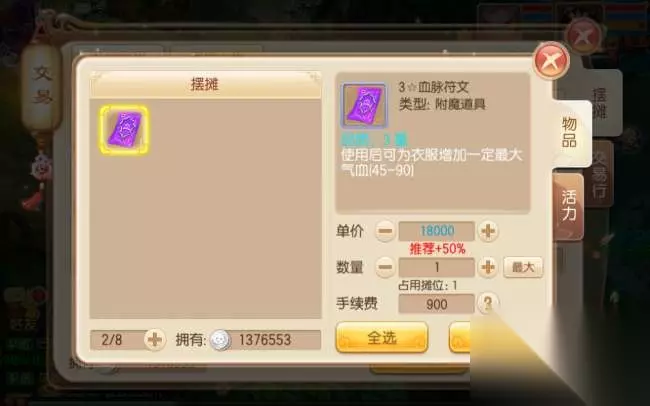 上架商品时可以自定义商品的售价和数量,手续费是固定的5%售价,毕竟摆摊也要摊位费的嘛~还算可以接受。