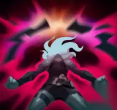 5、R技能 【必死无疑】:踢出血色石,并飞往第一名命中的英雄,将其标记为猎物。落地时,对附近所有敌军造成大量物理伤害,并使邻近敌军逃跑。她会进入强化嗜血狂热状态,并不断追杀猎物,直到其中一方死亡为止,期间内增加物理防御、魔法防御,以及跑速。