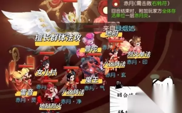 炎月战场以物理输出为主,伤害高。且战场特性每回合会扣我方当前20%气血。 封方寸杀死亡蚌仙子,一旦中死亡比较麻烦。随后杀力劈或者月宫,伤害高清宠强。 炎月战场血线压力大,血线不够时需要赶紧转会新月战场恢复。 三、赤月战场