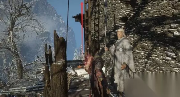 在难民营地再次遇到白袍老者,这里与之对话的时候一定要选择“同意”。 他旁边的梯子就是通往森林深处的入口。