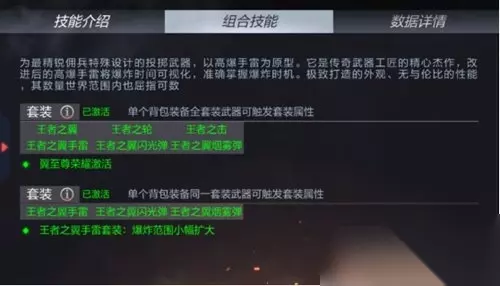 可以控制投掷物的爆炸时间:王者之翼手雷的这个属性非常有用,这使得瞬爆雷变得非常轻松,以后就能拿它直接炸别人脸上了,根本不给对方躲避的机会。 ◆小结:总体上来说,王者之翼手雷可以说是目前最强手雷了,首先是它的恐怖伤害令其他手雷望尘莫及,组合成套装之后还能扩大爆炸范围,而且这个手雷还能控制爆炸时间,在一些特殊场景下的适应性远远强于其他手雷。 二、王者之翼烟雾弹 烟雾效果