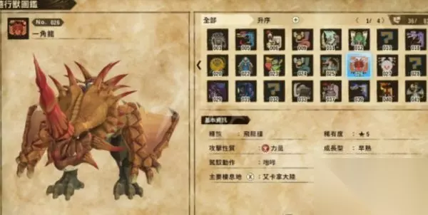一、一角龙 一角龙以战斗力来说,能够说是前期数一数二的怪物,驾御动作为遁地。到中期会有许多需求遁地才能开的宝箱,最重要的是,一角龙能够下手的时刻点非常早,这只怪物在抵达汝途村之后没多久就能够下手了。方位在艾卡拿高原左上方的峡概岩丘。
