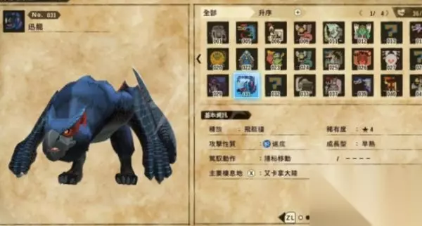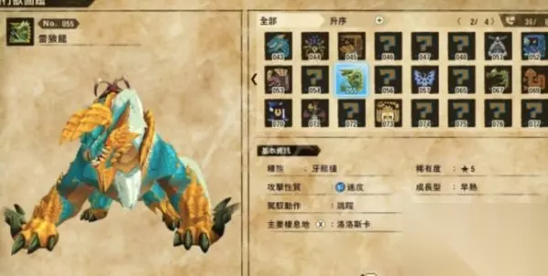 二、轰龙 这只不只战斗力高,也是最早能够运用藤蔓匍匐的随行兽。除了藤蔓匍匐之外,还有非常好用的冲刺,让你能够不必在当野猪骑士。 轰龙的方位同样是在峡概岩丘。