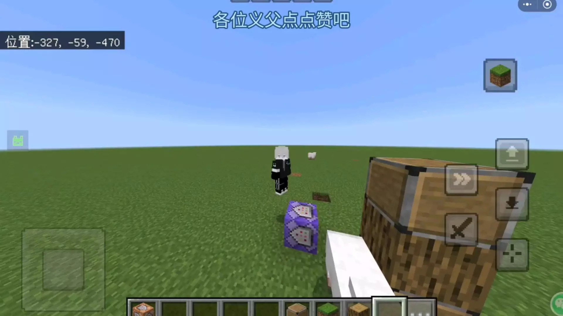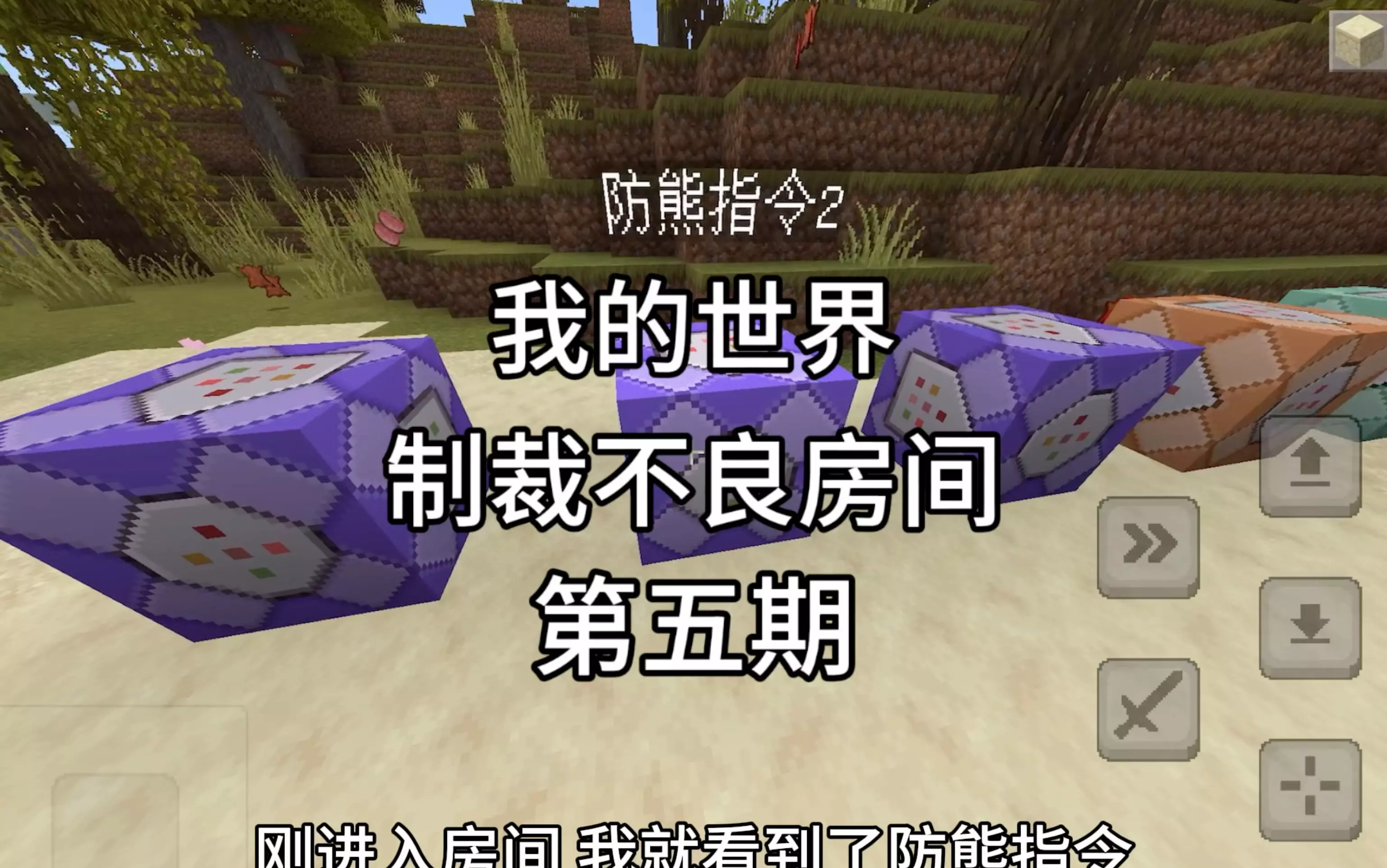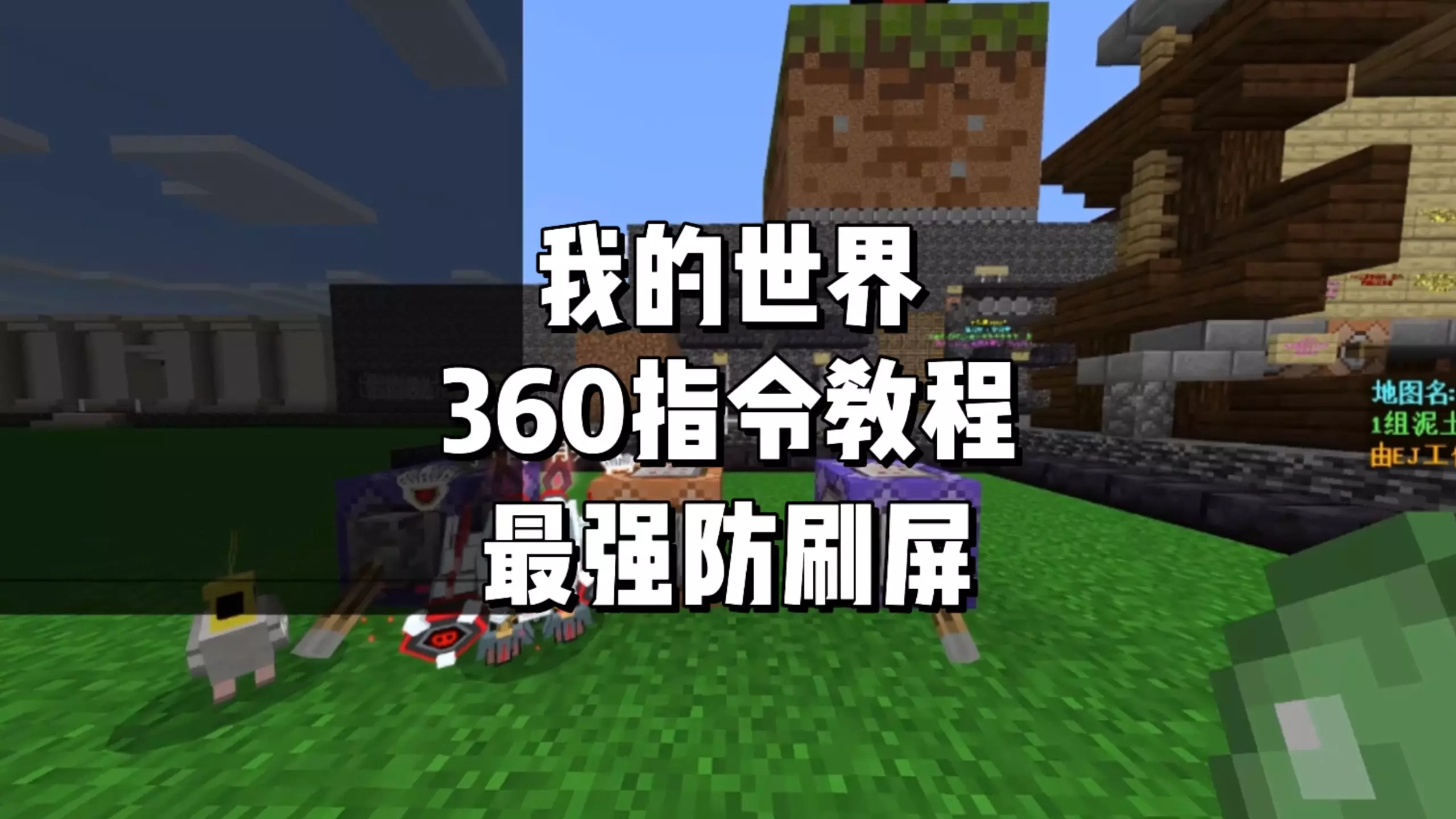 这是《我的世界》手机版的内容分享,展示了新的防熊指令,该指令为防刷屏第二代360版,能抵御刷屏类的熊行为,还展示了指令执行后的相关游戏反馈效果。